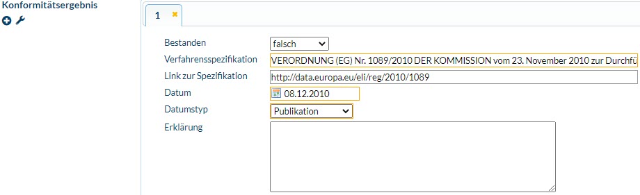 - Informationen im Kapitel "Grundsätzliche Metadatenelemente nach ISO- und GDI-DE-Festlegungen" im Reiter "Qualität" im Feld "Konformitätsergebnis" beachten