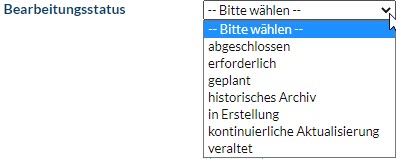 - Auswahl des Bearbeitungsstatus des Datenbestandes oder einer Revision