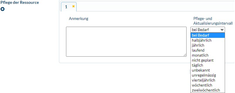 - Information zu Besonderheiten der Pflege der Ressource im Feld „Anmerkung“ (1) möglich